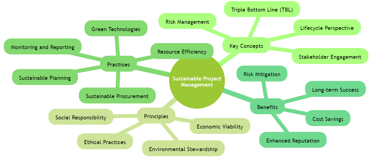 Sustainable Project Management(SPM) refers to the integration of sustainability principles into project management practices. It involves managing projects in a way that considers the long-term impacts on the environment, society, and economy, ensuring that project outcomes contribute positively to sustainable development.